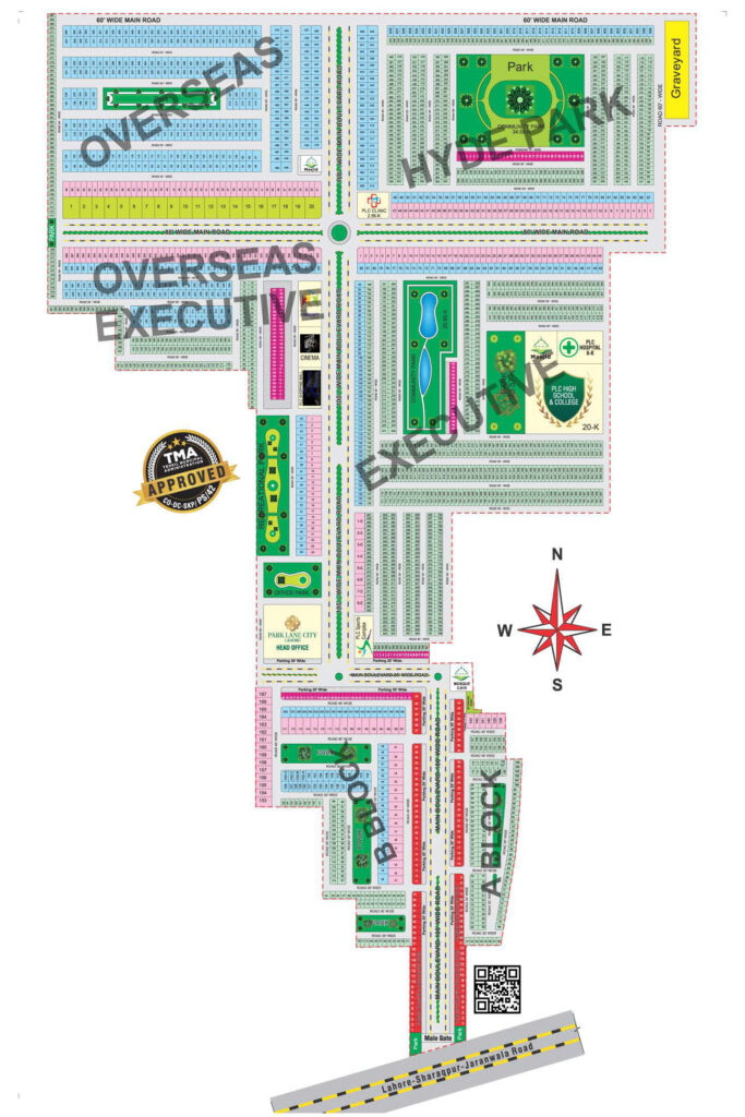 Park Lane City provides 5 Marla plots for sale in Lahore, Pakistan. This Plot has a dimension of 45.0 ft lengths and 25.0 ft width. Main Boulev Road is 100 feet wide and the street is 30 feet wide. all details available on the map